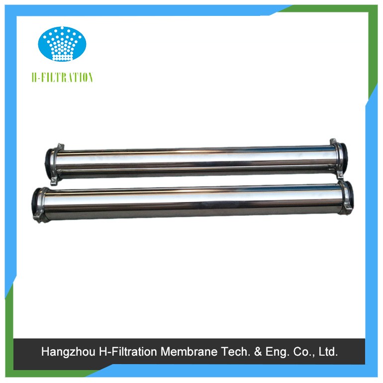 本產(chǎn)品為外壓式超濾膜,根據(jù)膜組件外壁的箭頭方向, 箭頭指向的端口是超濾透過液出液口,下部是電泳漆原液進(jìn)液口,側(cè)面上面的口為電泳漆回流口,側(cè)面下面的口可以堵住不用;在電泳漆使用過程中可以使用水沖洗,超濾透過液沖洗,沖洗時(shí)從膜的回流口進(jìn)入,原液進(jìn)入口排出即可。當(dāng)沖洗效果不是很好時(shí),可以用有機(jī)酸和溶劑浸泡,循環(huán)沖洗清除膜中的油漆,從面恢復(fù)膜的通量。