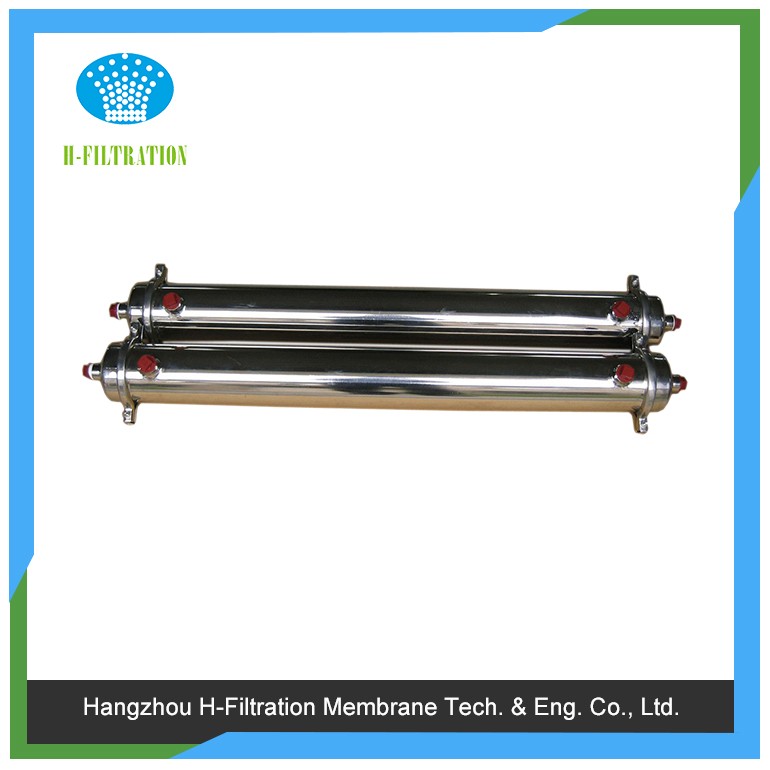 | 產(chǎn)品說明: 電泳漆超濾膜的主要功能是對電泳涂料(或者噴淋水)進行超濾,從而提高電泳槽液品質(zhì),或者回收電泳工件沖洗液中的電泳涂料,降低生產(chǎn)成本,減少排放。本設(shè)備還可廣泛用于電泳涂料超濾凈化、水的過濾凈化以及各種廢水處理等。 電泳漆超濾機是電泳涂裝線中不可缺少的關(guān)鍵配套設(shè)備,它的作用有以下四個方面。(1)可回收從電泳工件表面沖洗下來的多余電泳漆,避免由于帶有漆的廢水直接排放而造成的環(huán)境污染。(2)回收后的電泳漆可直接再利用,從而節(jié)省電泳涂料的消耗量,使企業(yè)節(jié)約30%的電泳漆購置費。(3)對槽液進行超濾,超濾出水可以對工件進行沖洗,沖洗液直接回流電泳槽,可實現(xiàn)閉路循環(huán)清潔生產(chǎn),實現(xiàn)零排放。(4)通過排放適量超濾液,可除去生產(chǎn)過程中帶入電泳漆槽中的各種離子,降低電導(dǎo)率,穩(wěn)定電泳漆槽液,提高涂裝工藝質(zhì)量。 UF4040D-SS是電泳漆超濾膜中常見的一種,外殼為不銹鋼材料,過濾膜面積超過12M2,超濾出液量>120L/H, 適合于不同的電泳涂料。對陰陽樹脂電泳漆具有超濾出水量大,通量穩(wěn)定的特點。具體技術(shù)參數(shù)如下表。